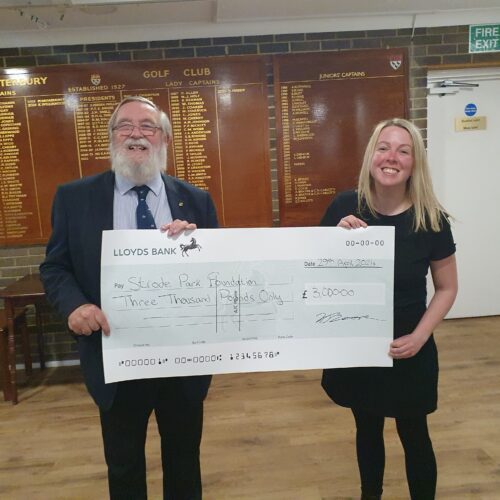 • A huge thank you to Forest of Blean Rotary Club and their president Mike Moore who chose to support the Strode Park Foundation as his ‘Charity of the Year’. Karen and Chief Executive Paul Montgomery were invited to a special dinner last night (29 April) where they were presented with a cheque for £3,000 – the amount the club has raised so far through the year – with the cycle ride and concert sales still to be added to this total. THANK YOU!!