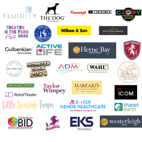 Fluidity, Wilbee & Son, ADM Computing, Safer Hands Healthcare, Taylor Wimpey south east, Rotamaster, The Dog in Wingham, Eastwell Manor, Herne Bay Football Club, Kent Cricket, Kavanagh Cinema, The Gulbenkian, The Urban Cage, Monsterslam, Wahl, Pawsome Yoga, Makcaris, icom, Active Life, Scalectrix, The Little Seaside Town, Bluewater, Canterbury Bid, EKS, Strode Park House Resident, Strode Park Foundation, Wildwood, Herne Bay Crematorium, Westerliegh Group, Thanet Earth.