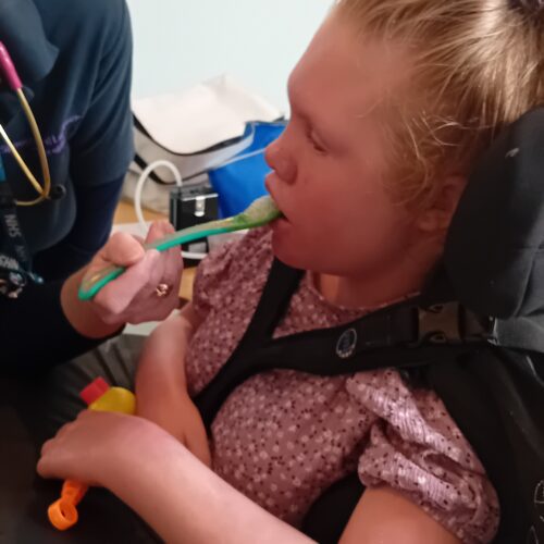A young resident at Strode Park Foundation’s Canterbury home is thriving thanks to a new innovative device to help her with tasting food.
