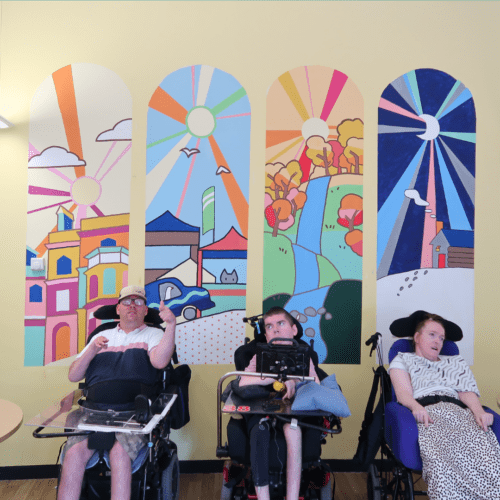 The project began with students from UCA studying Visual Communications coming for a tour of Strode Park House to understand more about our charity’s work and get a feel for the home, before putting their designs together. In addition, a few students gave art workshops to the residents, explaining details of the design process for their new murals.