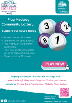 Play Medway Community Lottery! Support Platters Farm Lodge, tickets cost just £1 a week with chances to win up to £25,000. Click the poster below or go to www.medwaylottery.co.uk/support/find-a-good-cause.